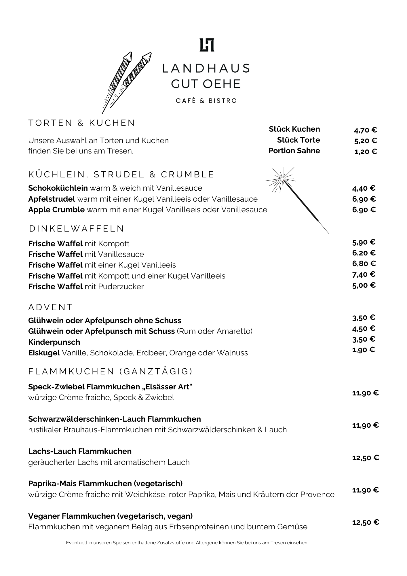 Ergänzend zum wechselnden Angebot im Kuchentresen finden Sie Belgische Dinkel-Waffeln nach unserem Gut-Oehe-Rezept und ofenwarmen Apfelstrudel auf unserer Nachmittagskarte. Für süße Stunden in Maasholm!