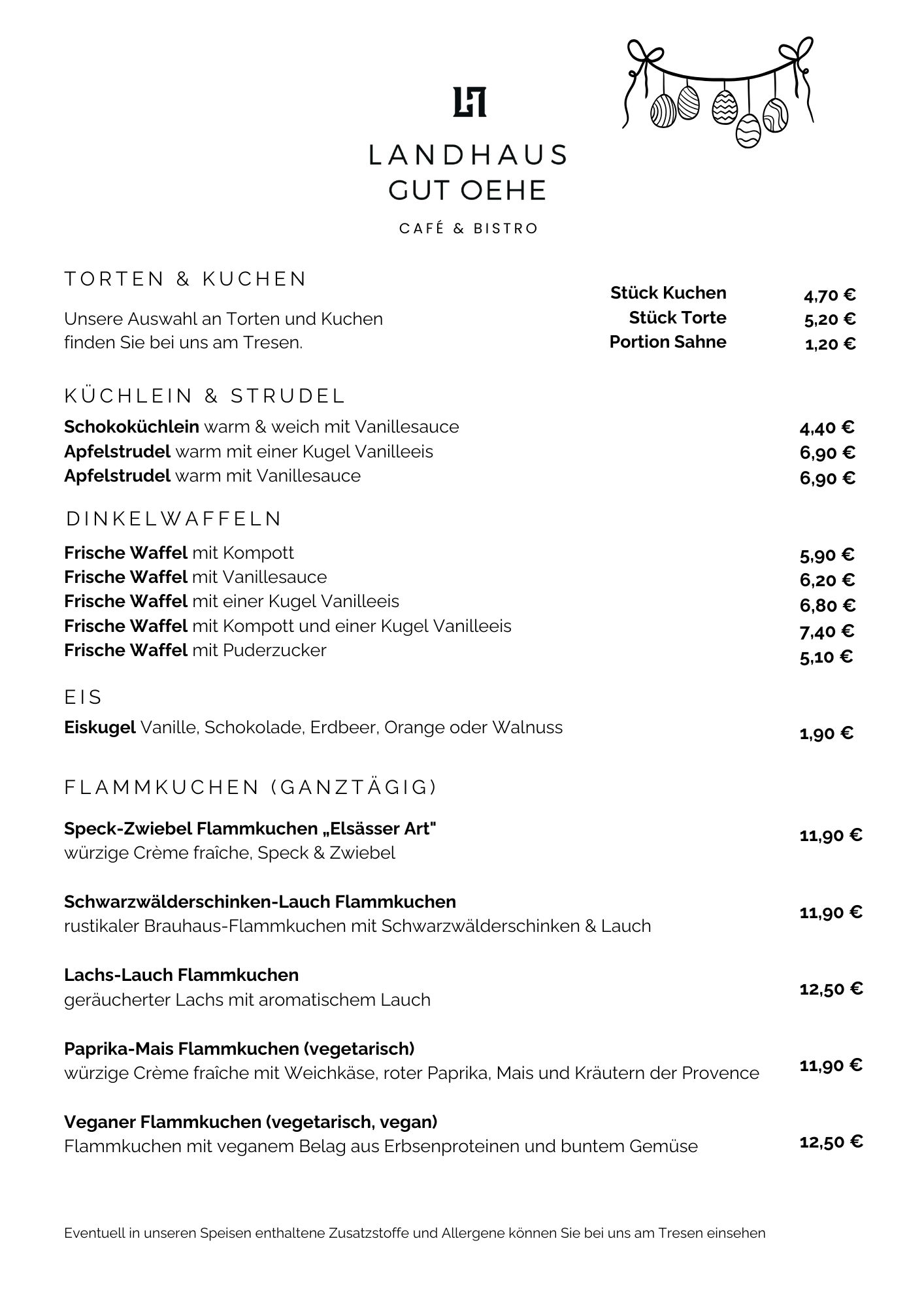 Ergänzend zum wechselnden Angebot im Kuchentresen finden Sie Belgische Dinkel-Waffeln nach unserem Gut-Oehe-Rezept und ofenwarmen Apfelstrudel auf unserer Nachmittagskarte.