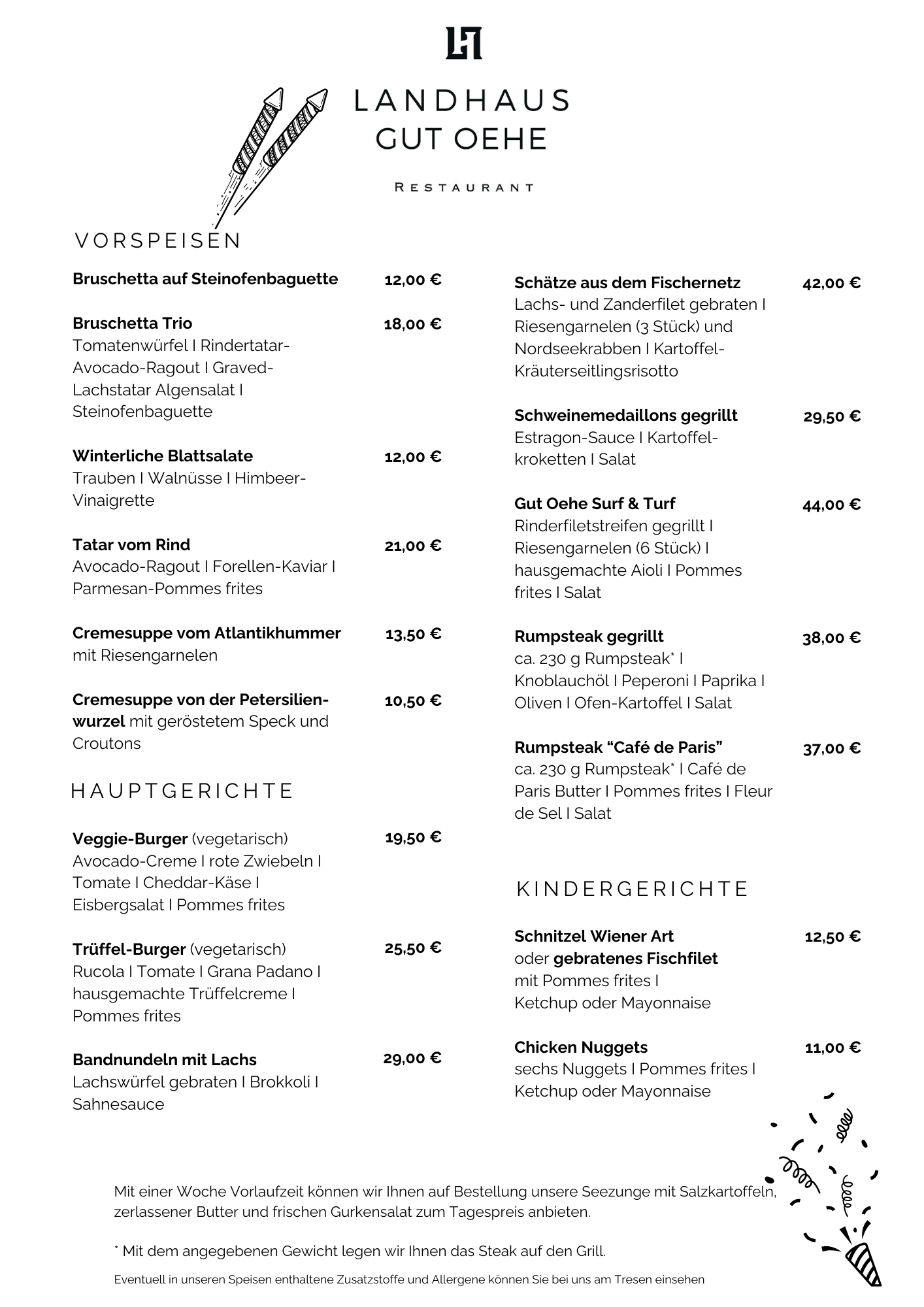 27. Dezember - 30. Dezember & 2. Januar - 3. Januar 2026: ab 17.30 Uhr (à la carte)Abendkarte